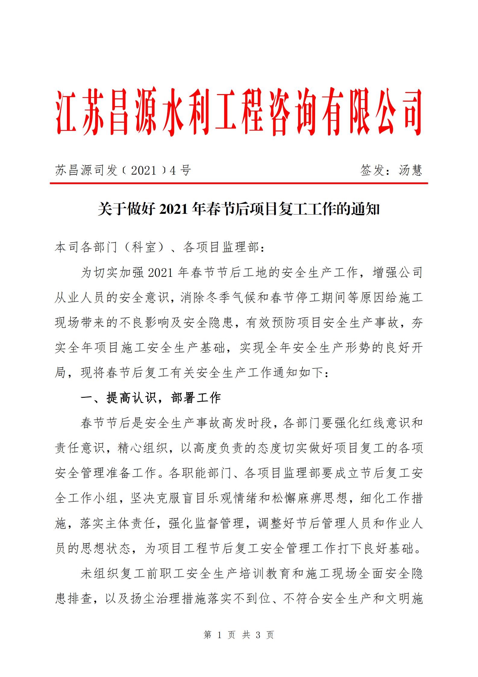 關于做好2021年春節后項目復工工作的通知